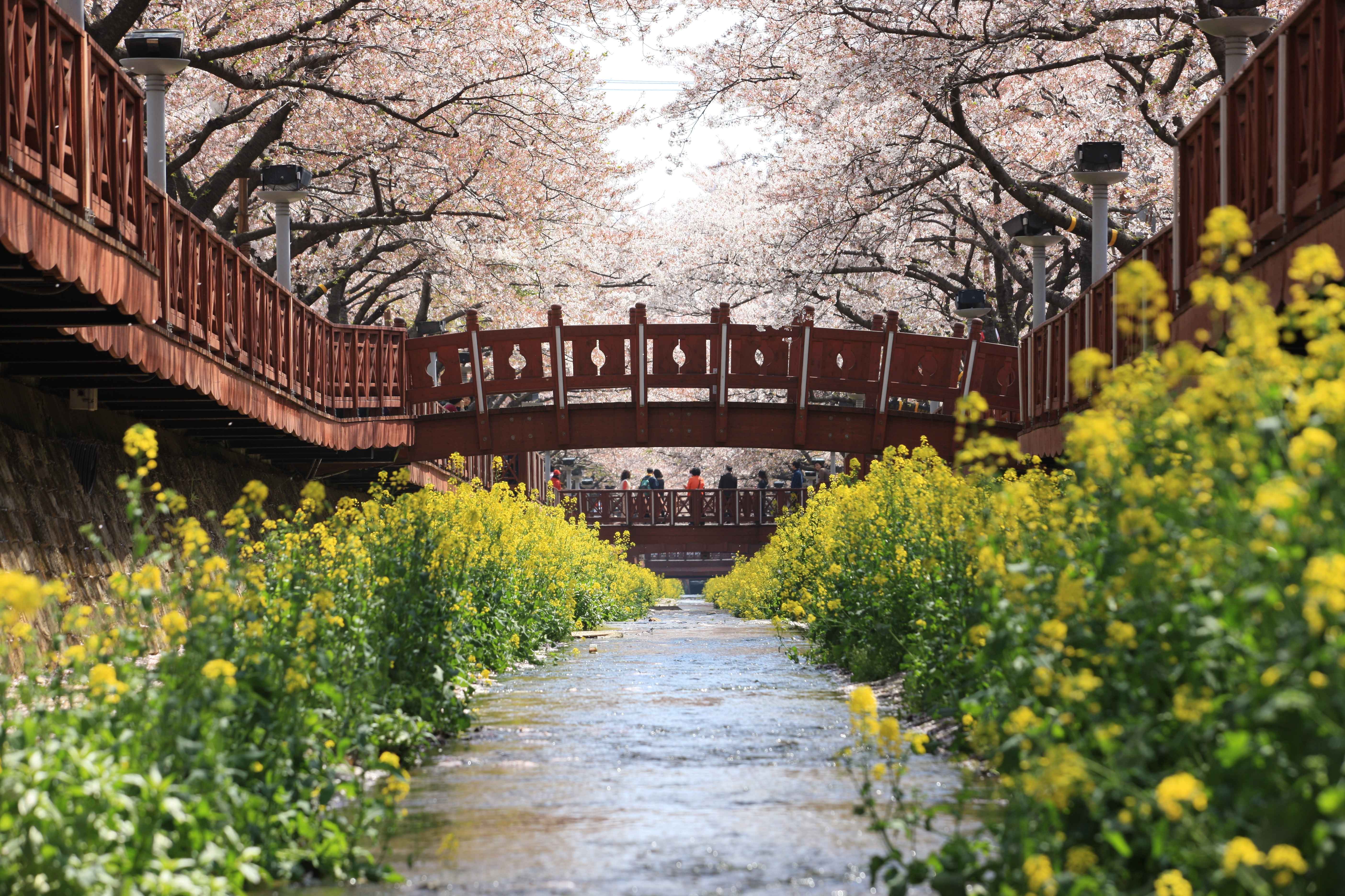 진해는 국내 최대 규모의 벚꽃 축제로 유명하죠! 여좌천 로맨스 다리와 경화역은 특히 사진 명소로 인기가 많아요. 📷